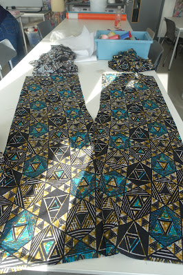Week 4 - Cutting out and sewing. I weighted them down and chalked around the pattern.
