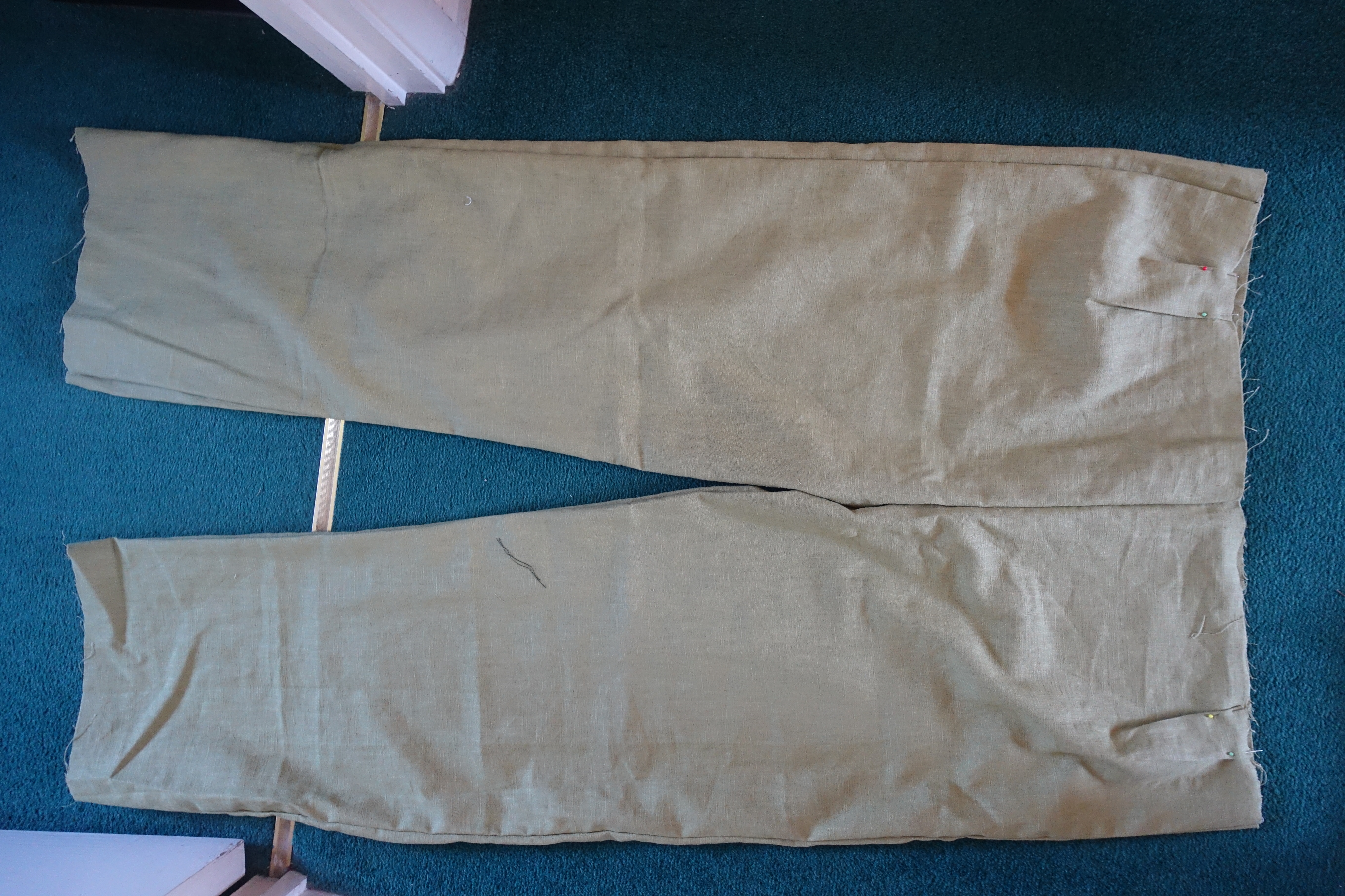 Next I took the waistband, sewed the ends together, folded it in half width wise and then pressed it. Check to make sure it fits inside the trouser top, mine didn't and I had to add some more on to it.