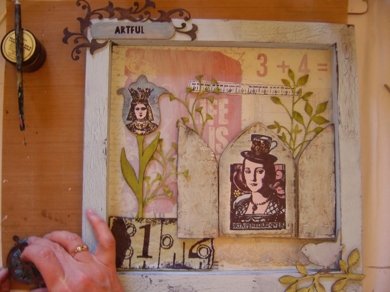 Lesley painting the frames, Jax adding images, Lin making decisions!!