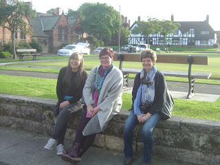 Lin, Emma and Helen on the wall opposite the row of houses a couple of shots above.