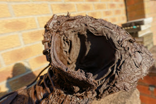I painted the whole of the boot in a layer of bronze Powertex and added fabric and clay pieces.