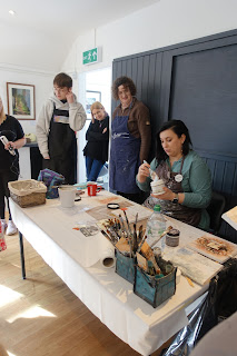 So here we are, all at the front again watching Anna demoing the first steps of the smaller than yesterday canvas.